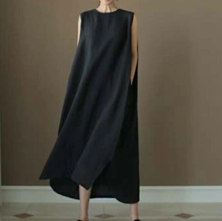 ワンピース レディース ロング丈ワンピース 韓国風 ノースリーブ 体型カバー カジュアル