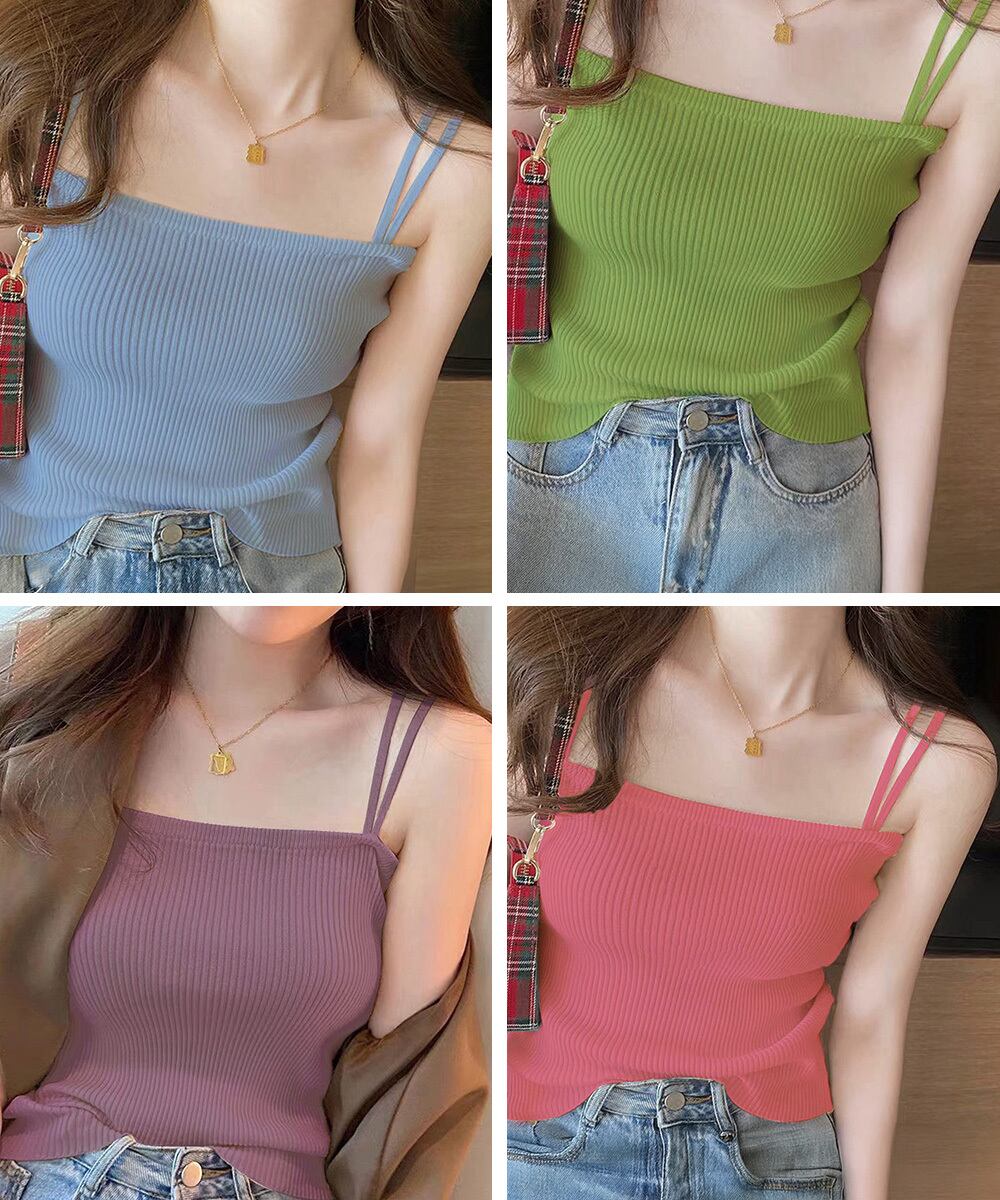 無駄のないシンプルなデザインが魅力のリブキャミソール