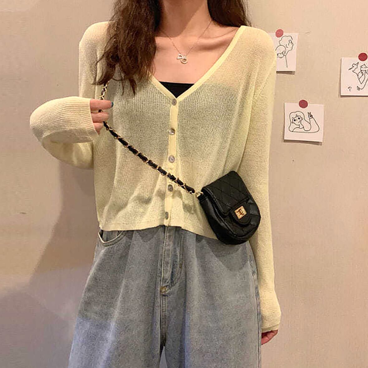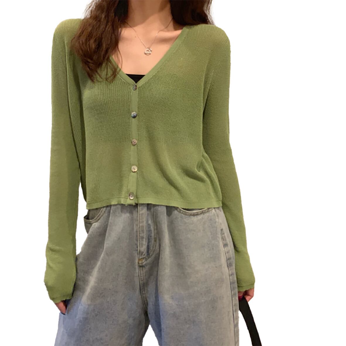 レディース Vネックカーディガン 長袖 日焼け防止 寒さ対策 透け感