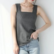 ブラ紐を隠せるリブ素材スクエアネックタンクトップ