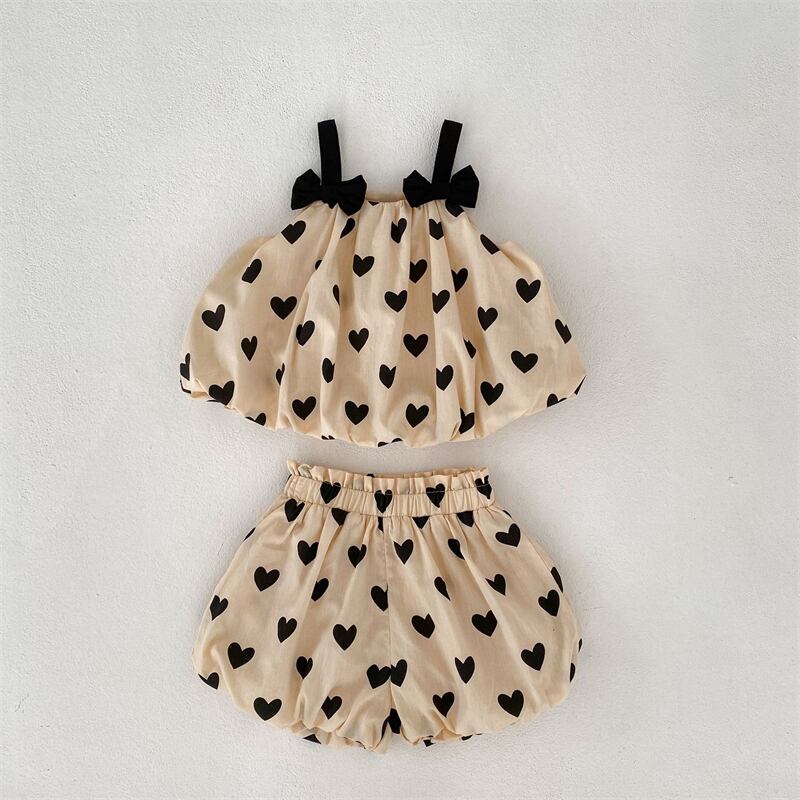 ins 夏新作 女の子 裏地付き ハート柄 セットアップ キャミソール ショートパンツ 子供服 可愛い